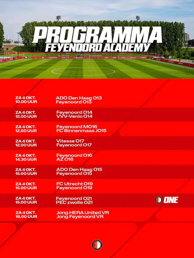 Rotterdam ademt weer voetbal. Terwijl de stad ontwaakt in het ritme van een nieuw weekend, klopt het hart van de Feyenoord Academy harder dan ooit. De groene velden glanzen onder de oktoberson, de veters worden gestrikt en de dromen worden gepoetst als de lichten in De Kuip.Voor deze jonge krijgers in rood en wit is het niet zomaar een weekend – het is een gevecht om trots, vooruitgang en betekenis.