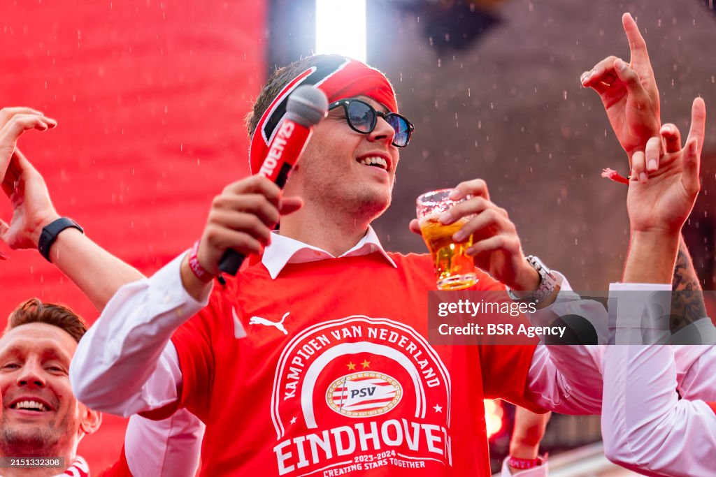 EINDHOVEN, NETHERLANDS - MAY 6: Joey Veerman of PSV during Title Celebrations PSV Eindhoven at Stadhuisplein on May 6, 2024 in Eindhoven, Netherlands. (Photo by Joris Verwijst/BSR Agency/Getty Images)