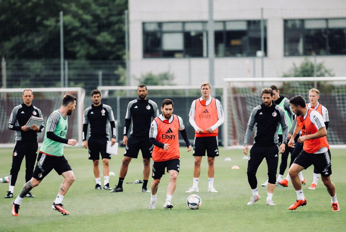 De Argentijnse superster, algemeen beschouwd als een van de grootste voetballers aller tijden, werd gespot terwijl hij actief meedeed aan oefeningen met de eerste selectie van Feyenoord tijdens een besloten training eerder vandaag. Gekleed in een feloranje trainingshesje en met zijn kenmerkende rust aan de bal, was Messi volledig betrokken terwijl hij passes gaf, snelle loopacties maakte en zijn uitzonderlijke balcontrole liet zien voor het oog van coaches en spelers.