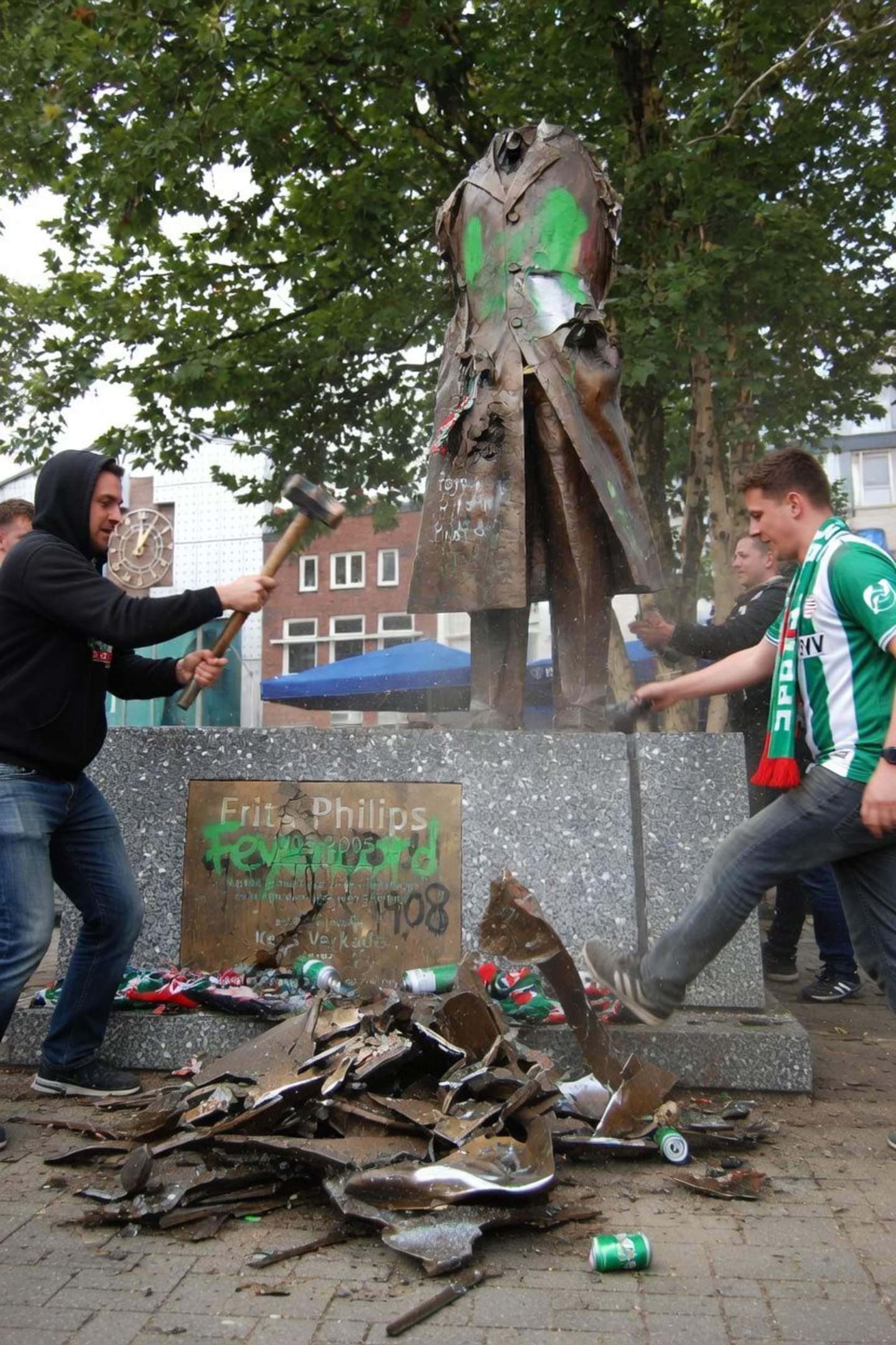 Iconisch standbeeld van Frits Philips verwoest bij vermeend incident — Eindhoven in shock